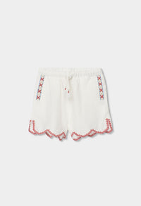 Bermudas de tejido de niña — Bermudas para niña. Color blanco químico. Una prenda versátil y cómoda para el día a día, perfecta para combinar con cualquier look.